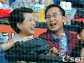 [OSEN=잠실,이대선 기자] 3일 '2011 롯데카드 프로야구' LG 트윈스와 롯데 자이언츠의 경기가 잠실야구장에서 열렸다. 가족과 함께 야구장을 찾은 이명박 대통령이 김윤옥 여사와 환하게 웃고 있다. / sunday@osen.co.kr