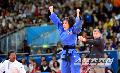 북한 여자 유도 대표팀의 안금애(오른쪽)가 29일(현지시간) 엑셀 런던 경기장에서 열린 52kg급 결승전에서 야네트 베르모이(쿠바)와 연장 접전 끝에 금메달이 확정되자 두손을 들어 환호하고 있다.20120729런던=올림픽사진공동취재단f